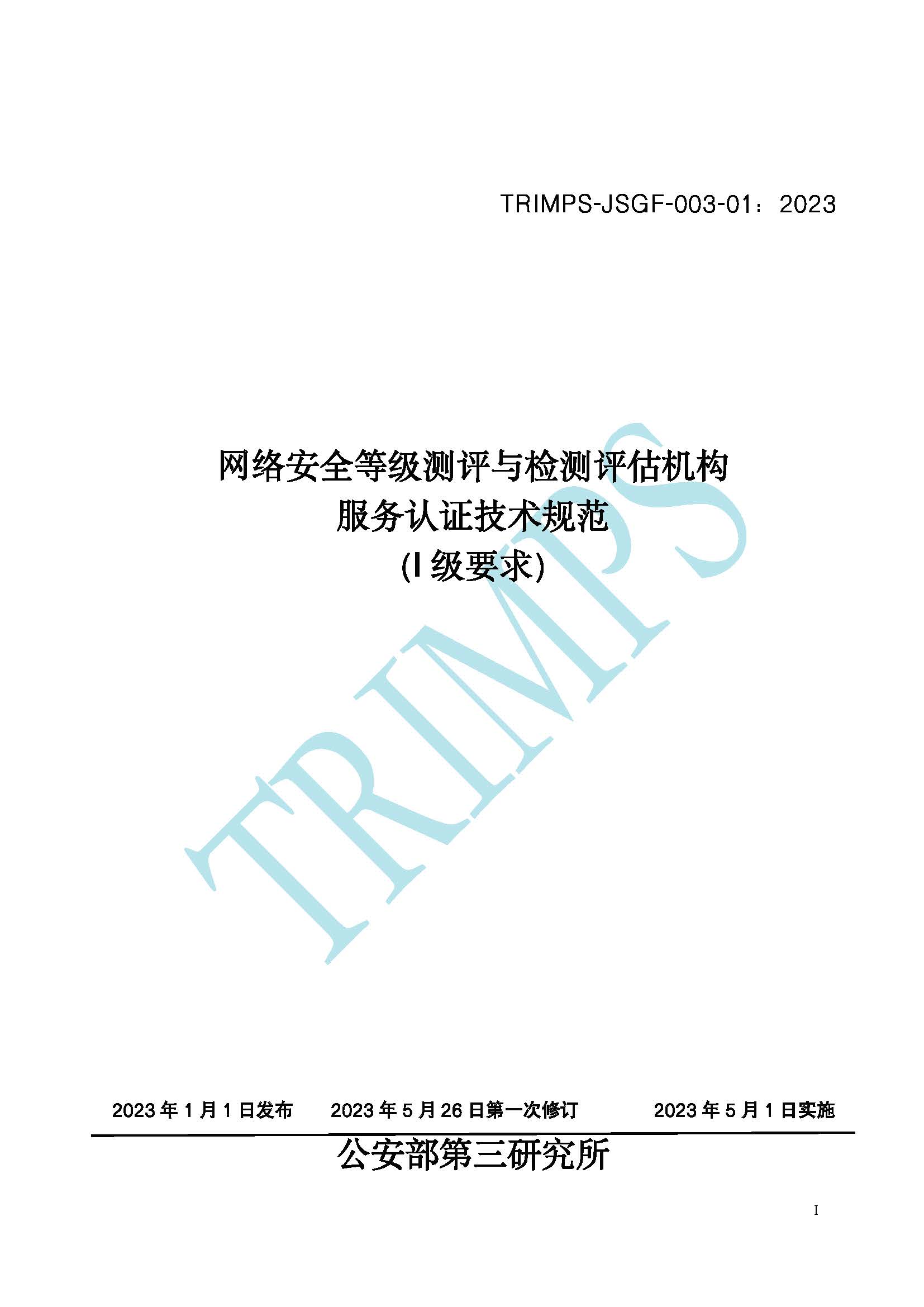 《網(wǎng)絡(luò)安全等級(jí)測評(píng)與檢測評(píng)估機(jī)構(gòu)服務(wù)認(rèn)證技術(shù)規(guī)范》TRIMPS-JSGF-003:2023